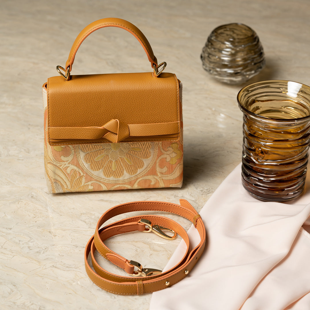 We travel regularly to Japan to source antique fabrics for our designs, focusing on the ‘Obi’ belt fabric from the Kimono outfit. This heavier grade silk is handwoven and rich with intricate patterns. Each Obi yields only 4-10 handbags, making every bag truly unique and exclusive – a limited-edition piece you’ll treasure forever.