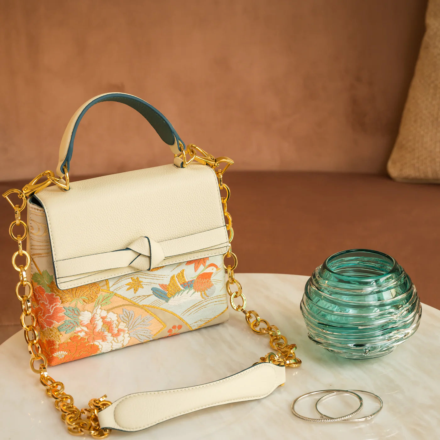 Discover our exclusive collection of handcrafted handbags, each made with rare upcycled kimono silks and premium Italian leather. Every design is a testament to timeless elegance, artistry, and sustainability. With less than ten pieces produced per style, your handbag is truly one of a kind. Explore the perfect blend of heritage and modern sophistication today.
